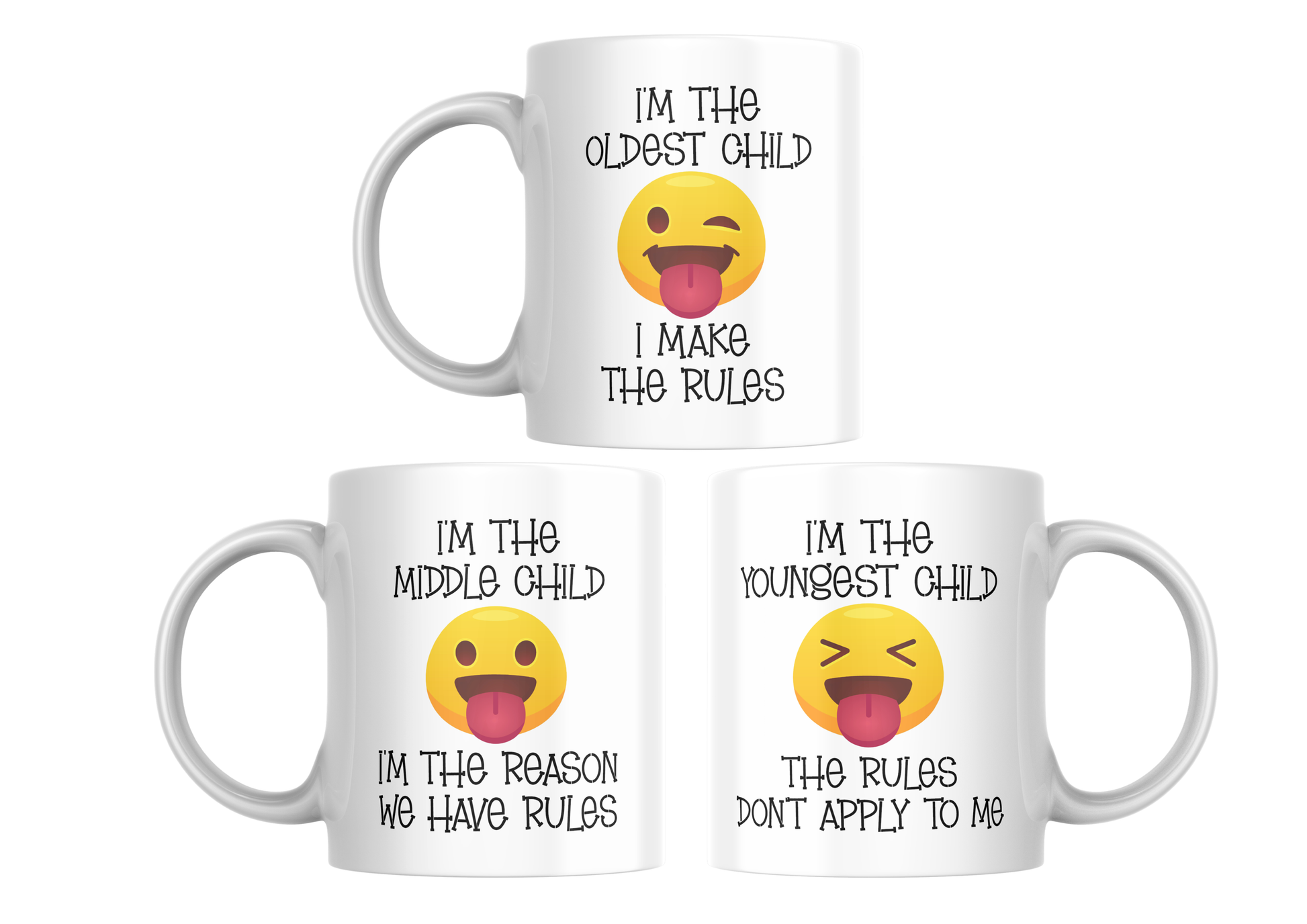 Sibling Rules Mug Set – Youngest, Middle, and Oldest Child Mugs