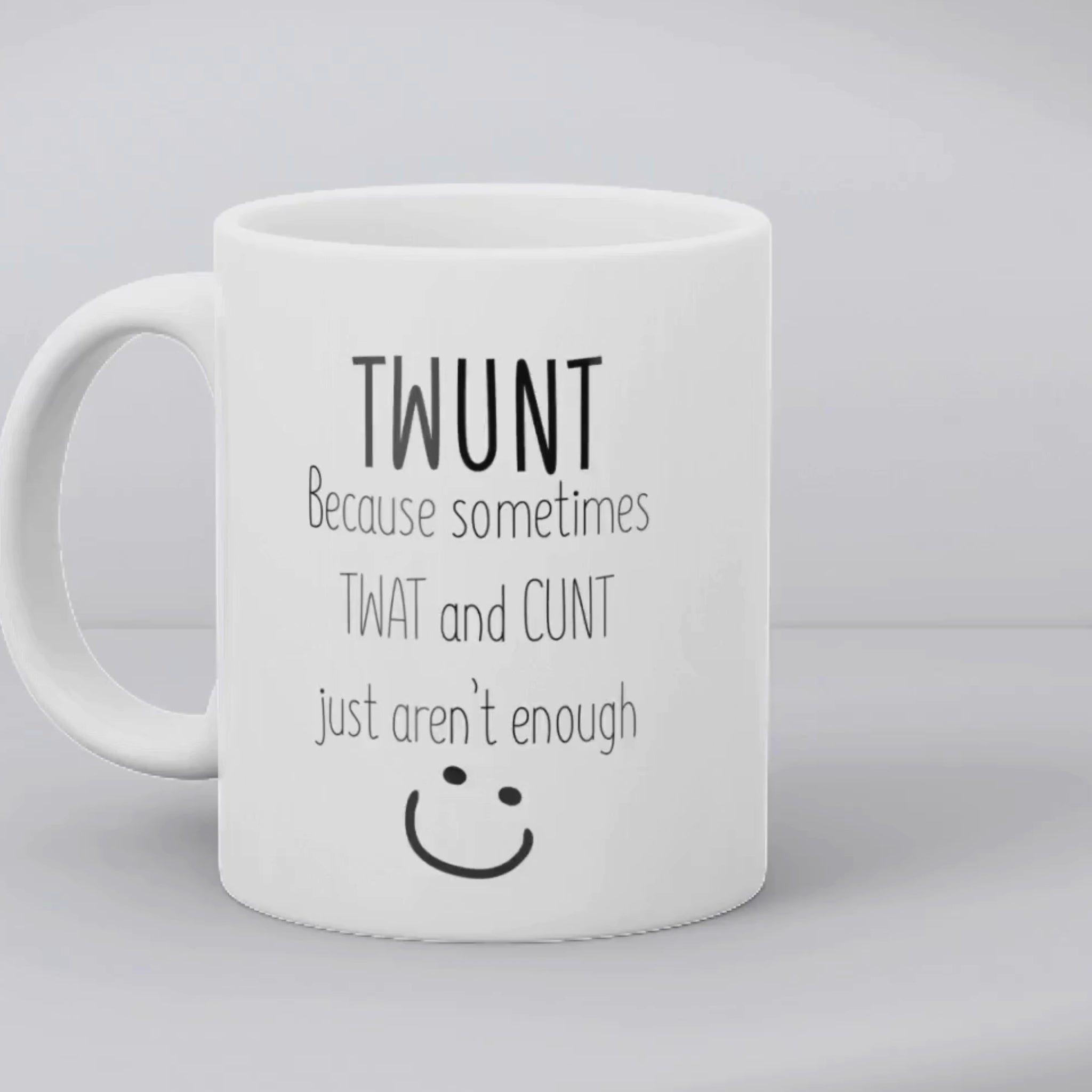 Looking for the ultimate insult in one hilarious package? Meet the "TWUNT" mug – because sometimes t*at and c*nt just aren't enough. Perfect for those who appreciate a bit of bold, cheeky humor with their morning brew.